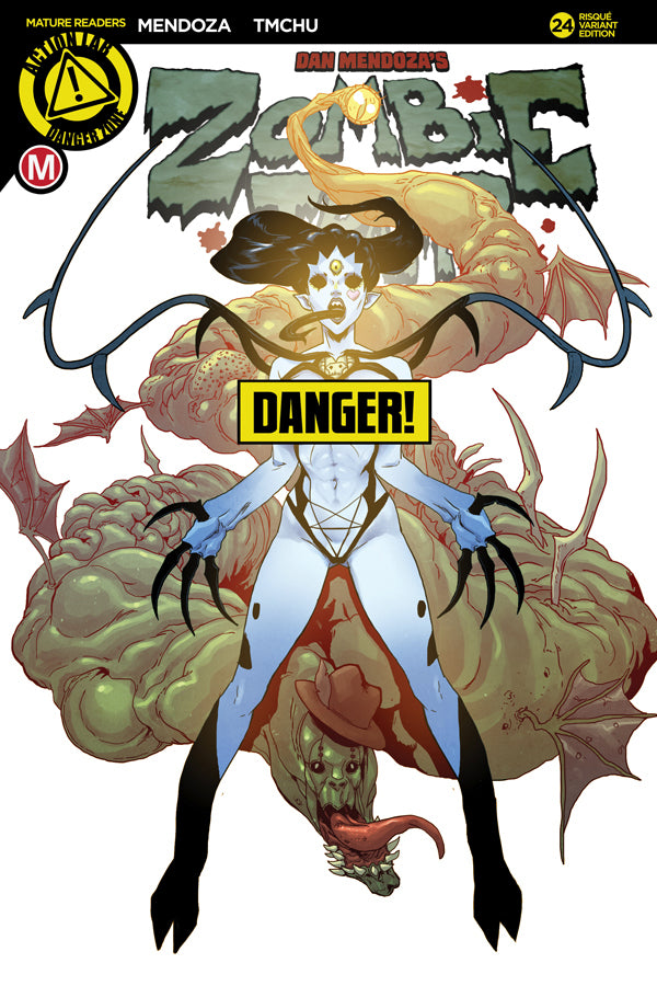 Features a risqué variant, plus regular and risqué "action figure" variant covers by series creator Dan Mendoza, and regular and risqué artist variants by Marcelo Trom (Zombie Tramp specials).