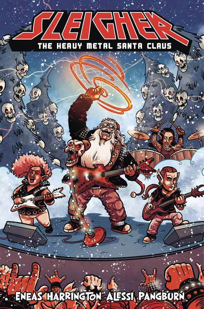 This is Spinal Tap meets a Rankin/Bass Christmas special! Sleigher is the most recent heir of the "Santa Claus" mantle... even if it's not really his bag. He'd rather slam back bourbon than glasses of milk, and blast metal instead of carols. But when a long forgotten member of Santa's rogues gallery rears his ugly head to reap chaos and destruction, Sleigher may have found his true calling - dishing out a holiday ass whoopin! Collects issues #1-4 of the high-octane holiday series!