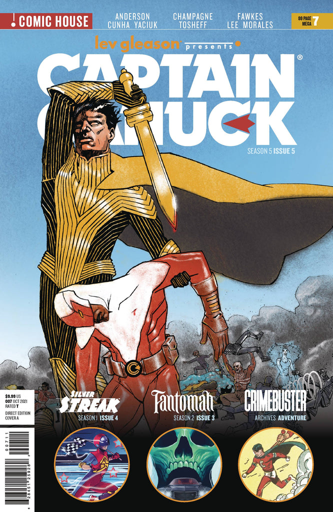 Fantomah: Season 2 Issue 3 by Ray Fawkes and Soo Lee. Will Fantomah's new allies Dr, Destine and Rugged be able to save her before she goes too far? Silver Streak: Season 1 Issue 4 by Keith Champagne and Stefan Tosheff. The race of Streak's life is about to reach the finish line! In the final issue of Season 1! Captain Canuck: Season 5 Issue 5 by Ho Che Anderson and Felipe Cunha. The final issue of Season 5 sees Michael Evans and the world, as we know, it reborn. But not every new beginning is a miracle. Plus, a classic archives adventure featuring Crimebuster!