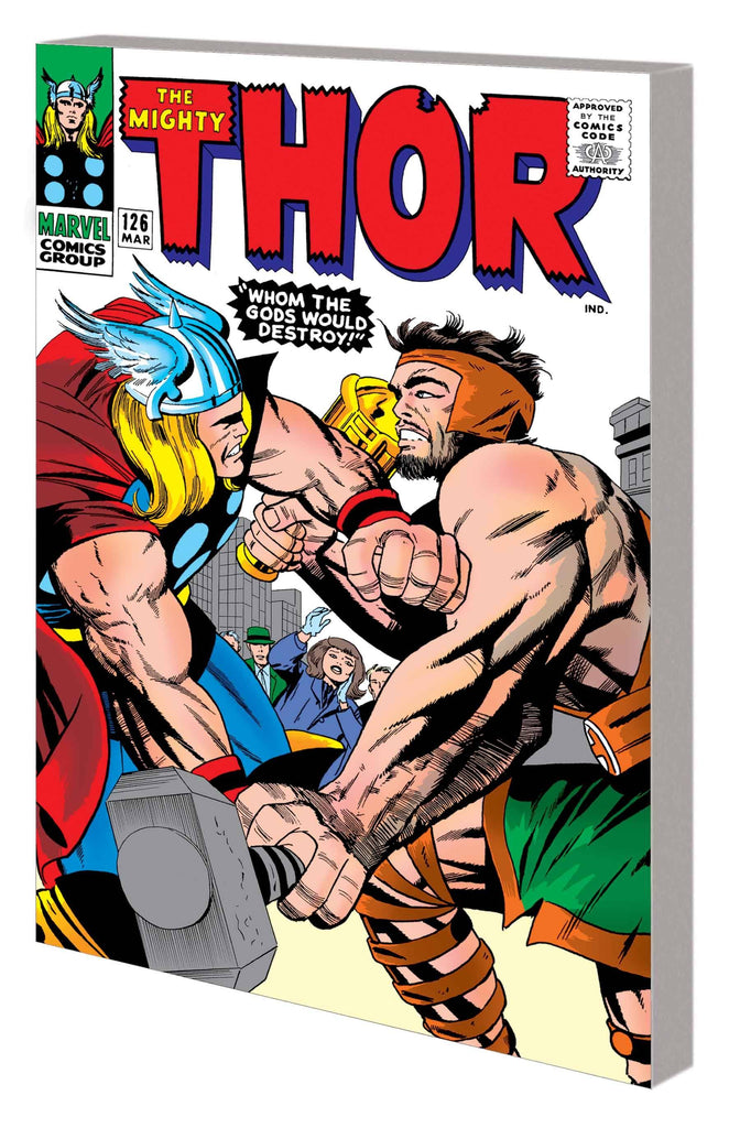 Batten down the hatches, set the emergency brake and make sure your fillings aren't loose because it's time for not just the first meeting of Marvel gods, but also the first battle between those gods, Thor and Hercules! Universes will tremble as the mighty fists of these two immortals crash down, and you will be thrilled by every moment. This Mighty Marvel Masterworks edition also features the ever-mischievous Loki, everyone's favorite lunkhead with the always-adaptable power - the Absorbing Man - and the classic "Tales of Asgard" backup feature recounting the myth and legend of Thor's and the Asgardians' early days. Collecting JOURNEY INTO MYSTERY (1952) #120-125 and ANNUAL (1965) #1, and THOR (1966) #126-127.