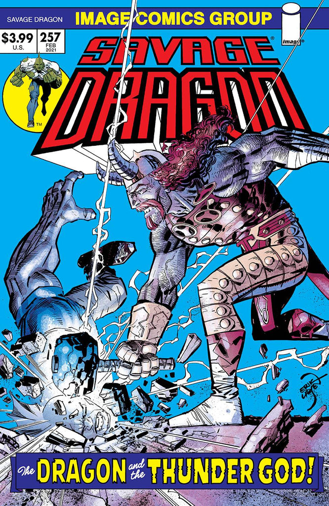 "THE DRAGON AND THE THUNDER GOD!"-The Norse Thunder God Thor returns to exact revenge on Savage Dragon and his unholy offspring.