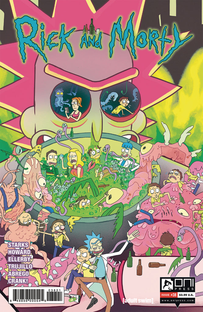 Here we go vampire-ing again! Summer's still being held captive by the Draculas (who are actually sort of smitten with her) and our hallowed heroes are storming the castle-literally! It's a drag-out, fang-out, stake-out, blood-soaked rescue story. So many Draculas! So many scary windows! So many vampire fights! Rick's drunk! Morty's useless! Beth is trying! Jerry is a you know what! It's the second part of the dynamic LET THE RICK ONE IN vampire-y two parter, co-written by TINI HOWARD (Rick and Morty: Pocket Like You Stole It)! It's awesome!