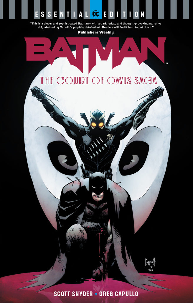 The DC Essential Edition series of graphic novels highlights the best standalone stories the medium has to offer, featuring comics' greatest characters. Hidden for years, the mysterious Court of Owls surfaces in Gotham City-what must Batman do to defeat them, and what deadly connection do they have to his past? Scott Snyder and Greg Capullo's masterpiece epic is collected in its entirety in trade paperback for the first time ever! Collects issues #1-11 of BATMAN as well as bonus material including sketches, scripts, design concepts and variant covers.